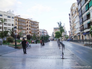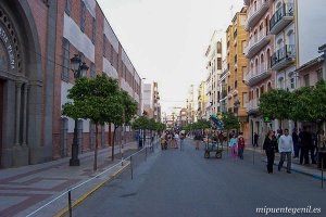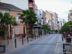 Ambos márgenes, ambos núcleos urbanos, se hallan unidos por el puente que reconstruyera en 1874 Leopoldo Lemoniez. En 1999 fue fortalecido y restaurado nuevamente. Gran parte del cas c o antiguo se vio fuertemente afectado por la última gran riada del Genil el año 1963, que llegó a inundar numerosas calles y viviendas, hecho éste que determinó claramente que la población se extendiera aún más por la parte más alta del casco urbano. Por empinadas calles llegamos a la zona intermedia de la población que enlaza con la parte más moderna, esto es, a las calles Linares, Horno, Aguilar, Tintor, Fernán-Pérez, Amargura, Vera-Cruz, Cosano, Santos, Adriana Morales, Sol y Luna, siendo la calle Aguilar una de las arterias principales de Puente-Genil repleta de establecimientos comerciales, donde se encuentra, además de las citadas iglesias de la Concepción y de la Asunción (ambas al arranque de la calle) la de Vera-Cruz, situada en el mismo centro y que sirve de punto semanasantero las noches de los sábados de Cuaresma durante las Subidas al Calvario y sobre todo el Jueves Santo y cada primer viernes de marzo (este último con motivo de la visita a Jesús Rescatado). En las calles Santos y Adriana Morales se concentran buen número de Casas-Cuartel de Corporaciones bíblicas (Los Levitas, Las Llagas de Jesús, El Clan de Quehat, Virtudes Teologales, Las Profecías, El Cirio, Las Parábolas, Los Macabeos, Los Evangelistas y La Historia de Tobías) y Casas de Hermandad de algunas Cofradías (Amargura, Esperanza y Santa Cena). Asimismo en esta parte de la población se encuentran también las Casas-Cuartel de las Corporaciones El Ancla, el Juicio de Salomón, el Cristo de la Misericordia, las Cien Luces, entre otras. En esta zona se hallan (en la calle Modesto Carmona) la Residencia municipal de la Tercera Edad (en el edificio donde en otro tiempo estuvo ocupado por un hospital y el convento de las RR.MM. Mercedarias); el Colegio Público ¨José Mª Pemán¨ (junto con el de ¨Ramiro de Maeztu¨ los más antiguos de la localidad, aunque en el año 2000 fue demolido para ser construido nuevamente en el 2001); las afamadas bodegas Delgado; etc. El centro geográfico, comercial y neurálgico de la población lo ocupa la Plaza del Romeral y su entorno, donde se encuentra un amplio Paseo con zona ajardinada y al que afluyen las calles Aguilar, Horno, San Cristóbal, Cruz del Estudiante, Avda. Susana Benitez, Adriana Morales, Doctor Ochoa, Parejo y Cañero, Antonio Aguilar y Cano, Agustín Espuny, José Ariza, Manuel Melgar y la Avda. de Andalucia, entre otras muchas. A partir de este punto las calles contrastan con las del casco antiguo y toman un trazado muy distinto de las zonas anteriores, siendo largas, anchas y rectilíneas y sus edificios de trazado moderno y en bastantes casos de mucha más altura que en la parte antigua. |